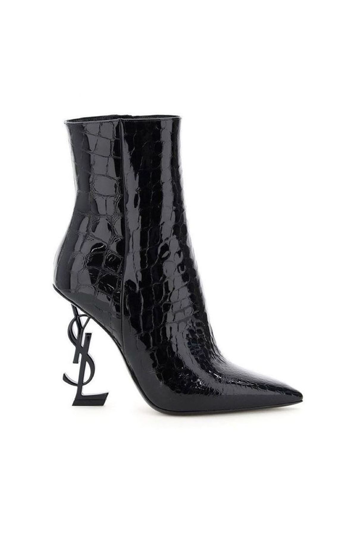 ikonik monogram topuklu, siyah timsah derisi görünümlü botları, her adımı çarpıcı bir ifadeye dönüştürüyor. Zarafetin ve cesaretin buluştuğu bu tasarım, zamansız bir şıklık sunuyor.