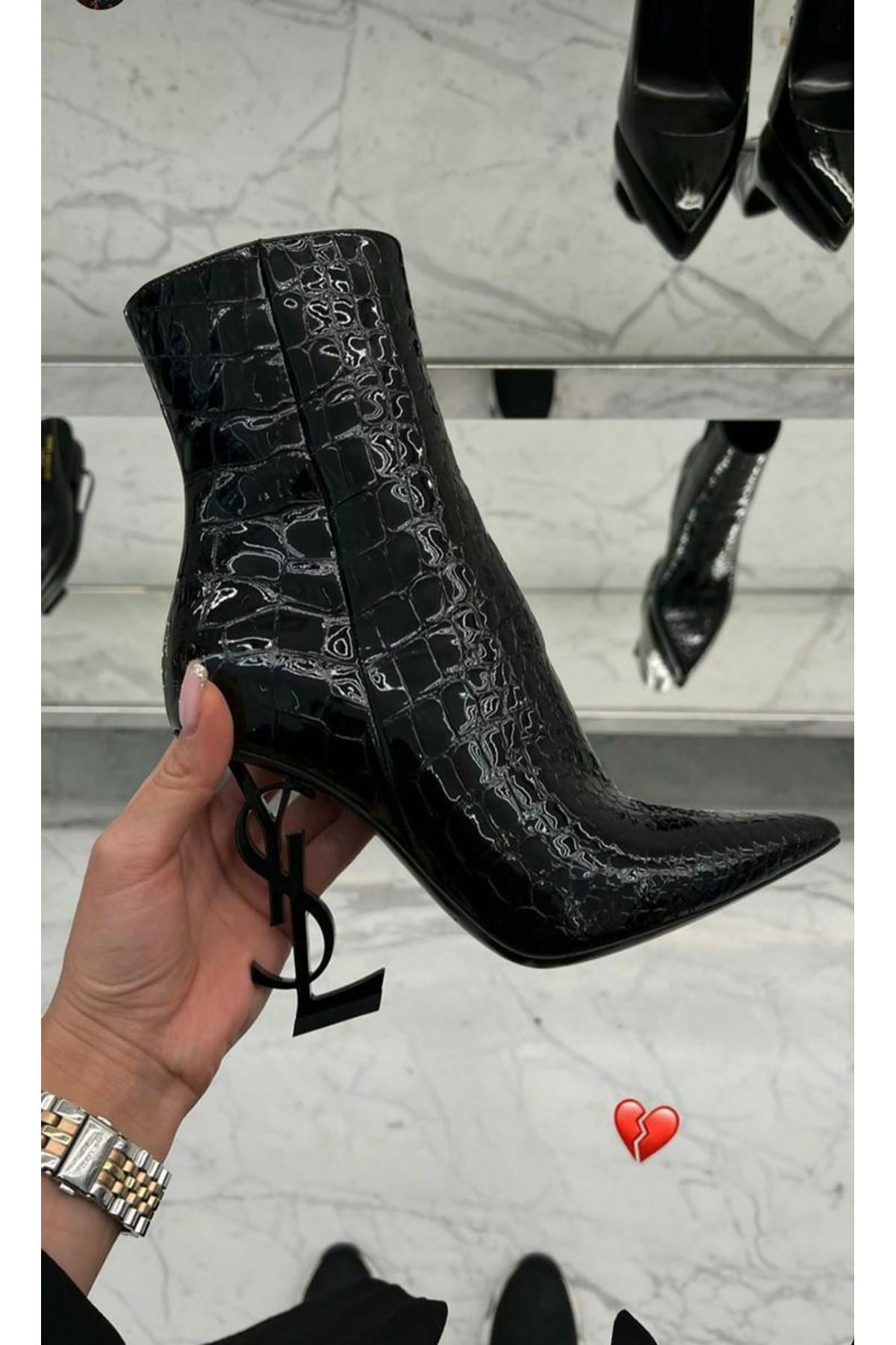 İKON'S topuklu, siyah timsah derisi görünümlü bot