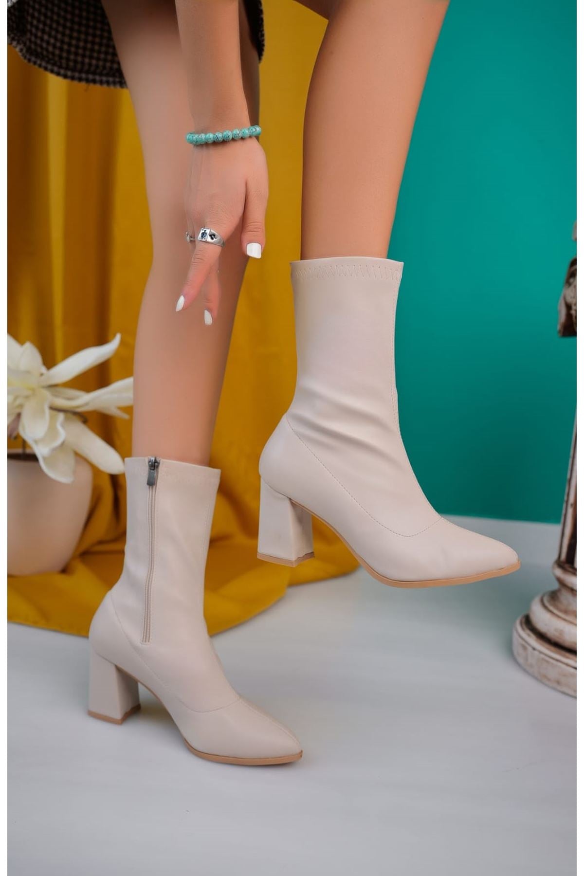Kadın FERMUARLI Şık Tarz Topuklu Uzun Bot